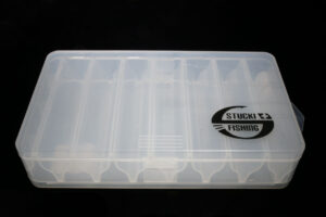 Die Stucki Streamer Box medium, eigentlich als Wobbler Dose designt, eignet sich perfekt für kleine bis mittlere Baitfishstreamer. Die “dreieckigen” Fächer schützen deine Fliegen und bieten dir eine gute Übersicht über dein Sortiment.