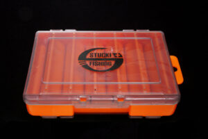 Die Stucki Streamer Box orange, eigentlich eine Wobblerbox, ist eine praktische Dose für kleine bis mittlere Streamer. Sie ist kompakt und bietet dir doch Platz für 24 Fliegen. Die “dreieckigen” Fächer schützen deine Streamer und bieten dir eine gute Übersicht über dein Fliegensortiment.
